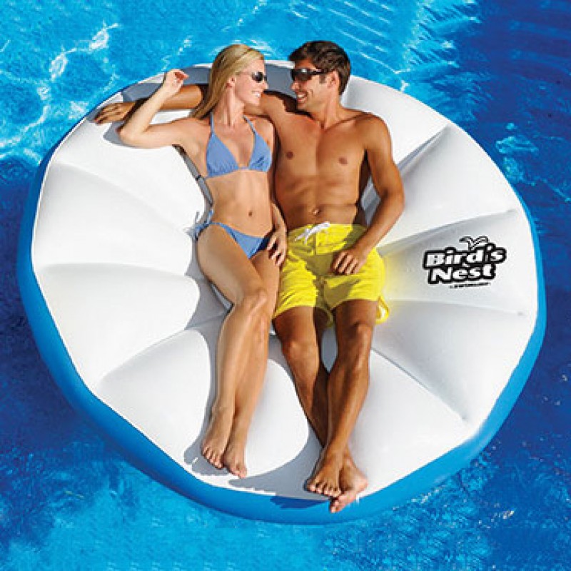 Our Swimline Birds Nest Pool Island is the perfect nest for two! This comfortable pool lounger is uniquely constructed to form a 360-degree pillow-top edge for maximum relaxation. Adults and kids will both enjoy floating away on this pool raft. The Birds Nest Pool Island features a concave design and luxurious size measuring 70-inches in diameter. This white and blue float from ToySplash will make you feel like you are on your own island while still in the comfort of your backyard!